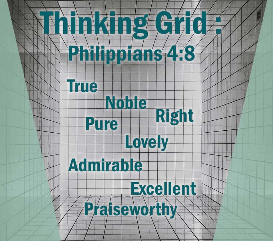 Adopting the “Thinking Grid” as a resource for better thinking affects what you think and say! Let God pour His power into your thoughts and words. And He does this in whatever is: